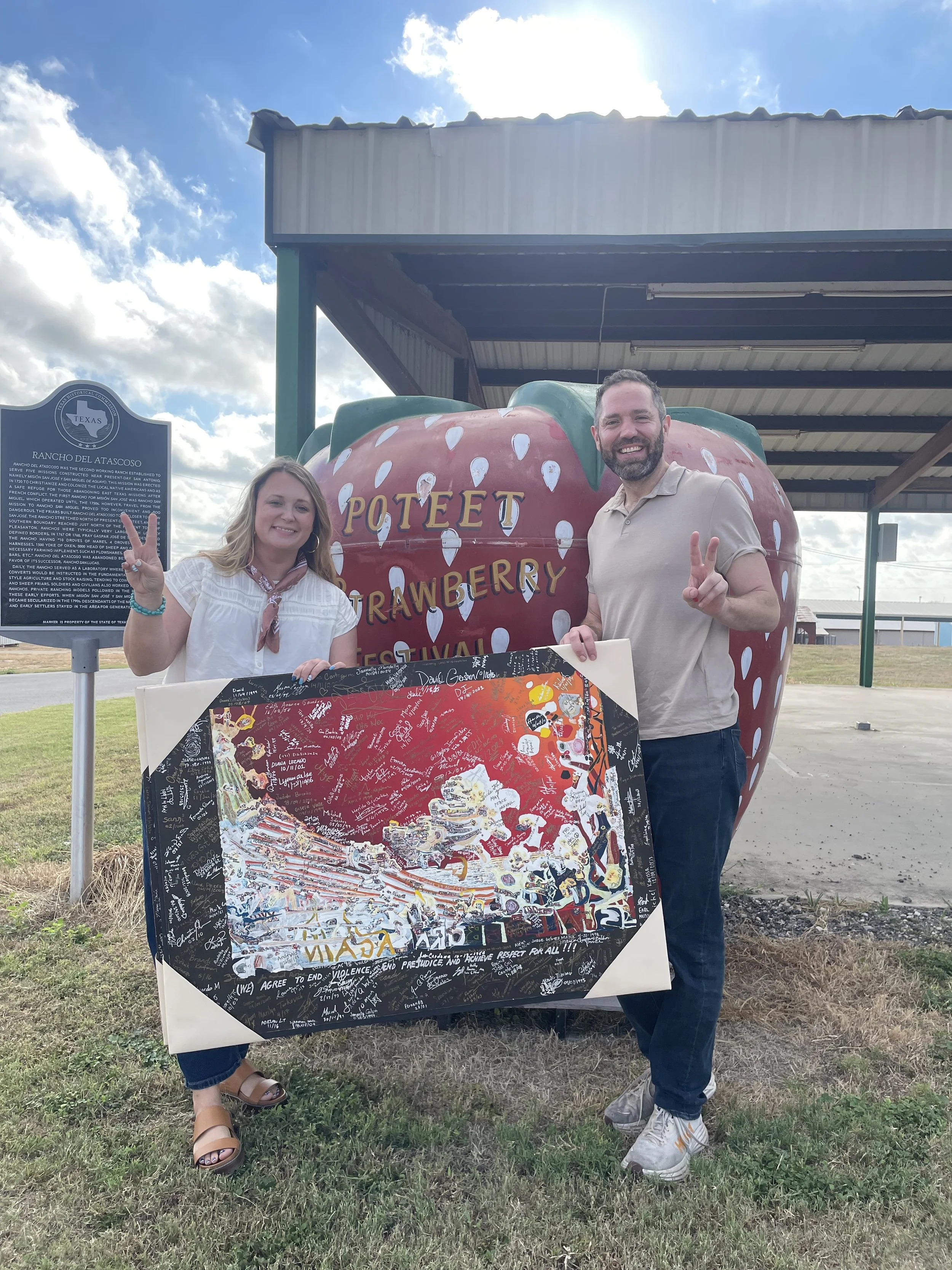 Individuals are photographed along the Camino with the Declaration and invited to share a brief story of compassion or care. Together, the audio recordings, photos, and signed artwork form a public record of people across the corridor committing to acts of compassion and peace.