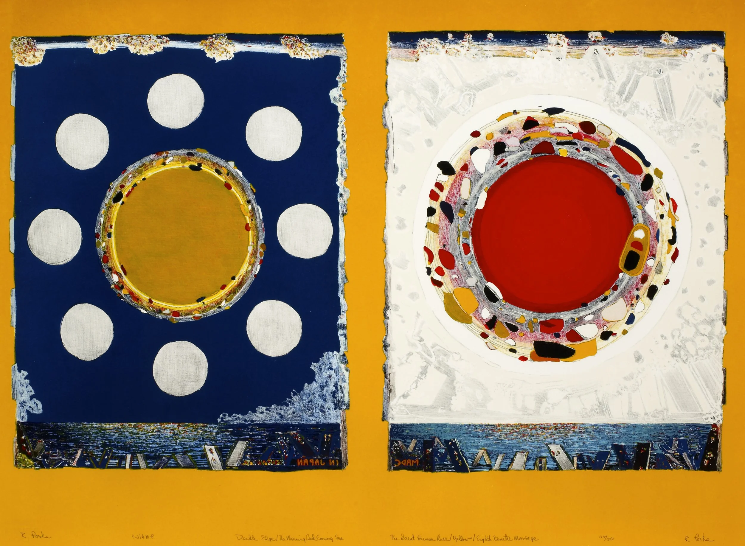 Roland Poska (1938–2017) was a revolutionary printmaker and papermaker who redefined the possibilities of fiber-based art. Born in Scotland to Lithuanian parents and raised in Rockford, Illinois, he earned his BA from Rockford College and his MFA from Cranbrook Academy of Art. He founded Fishy Whale Press in 1961, pioneering new approaches to lithography and handmade paper.