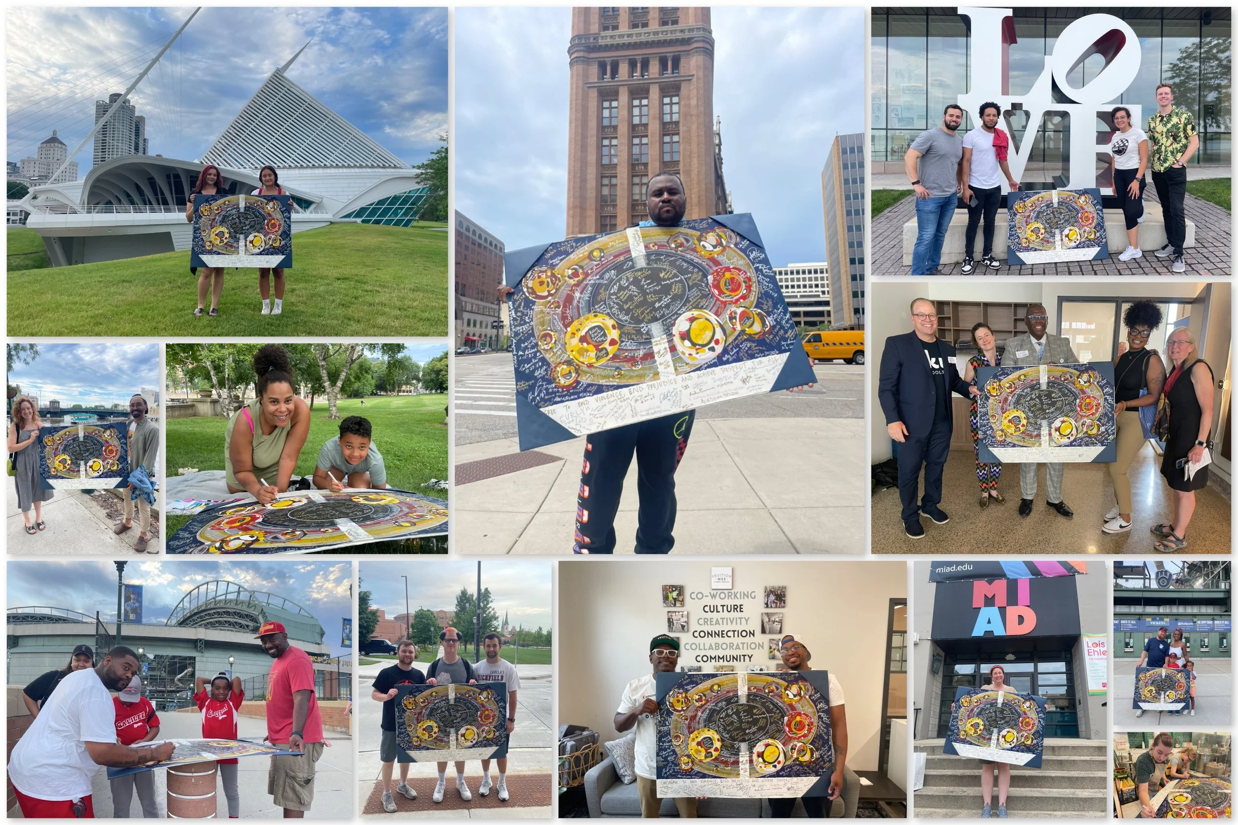 Bring the artwork to your community and invite people to sign for interdependence, dignity, and respect.